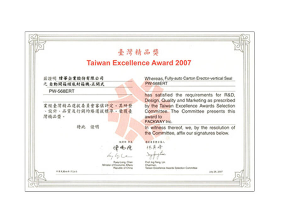 Taiwan Excellence Award: Automatic Carton Erector PW-568ERT